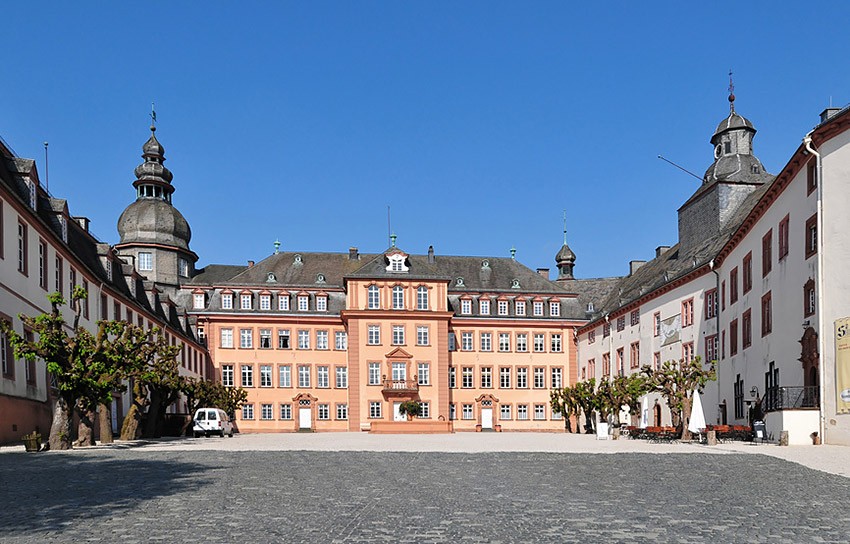 Der Ort Raumland hieß vor 1200 Jahren Rumilingen(e) und feierte vor etwa 10 Jahren seinen runden Geburtstag. Die Raumländer Quarzitkugeln aus dem Steinwerk Raumland bereichern mittlerweile auch das Stadtbild von Bad Berleburg. Links im Bild: Schloss Sayn Wittgenstein in Bad Berleburg